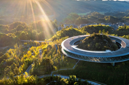 重慶南川區(qū)回歸原點·閱享自然,大觀原點·圓環(huán)酒店,云霧裊裊,如煙似海,穿行于自然于建筑之間