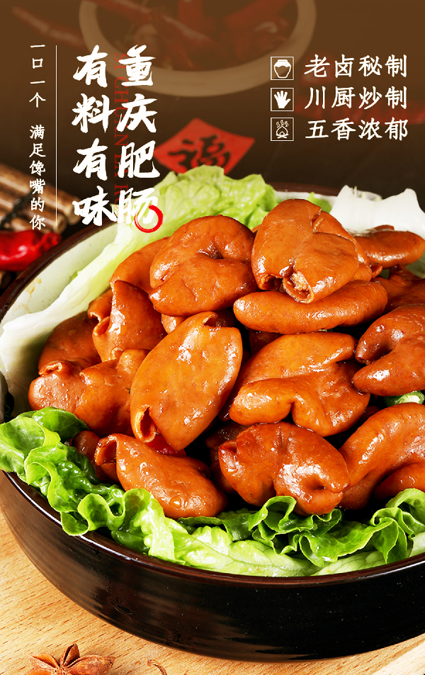 - 重慶肥腸批發(fā)市場就找鹵小福 重慶鹵小福是一家專業(yè)從事豬副產(chǎn)品的工廠,擁有研發(fā)、生產(chǎn)、銷售于一體的多元化食