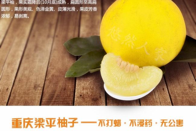 梁平柚,扁圓形至高扁圓形,果形美觀、色澤金黃、皮薄光滑,果皮芳香濃郁,易剝離。果肉淡黃晶瑩,香甜滋潤(rùn)、細(xì)嫩化渣,汁多味濃,營(yíng)養(yǎng)豐富,具有“天然罐頭”之美譽(yù)。機(jī)器智能分級(jí)篩選,無害精美禮盒包裝