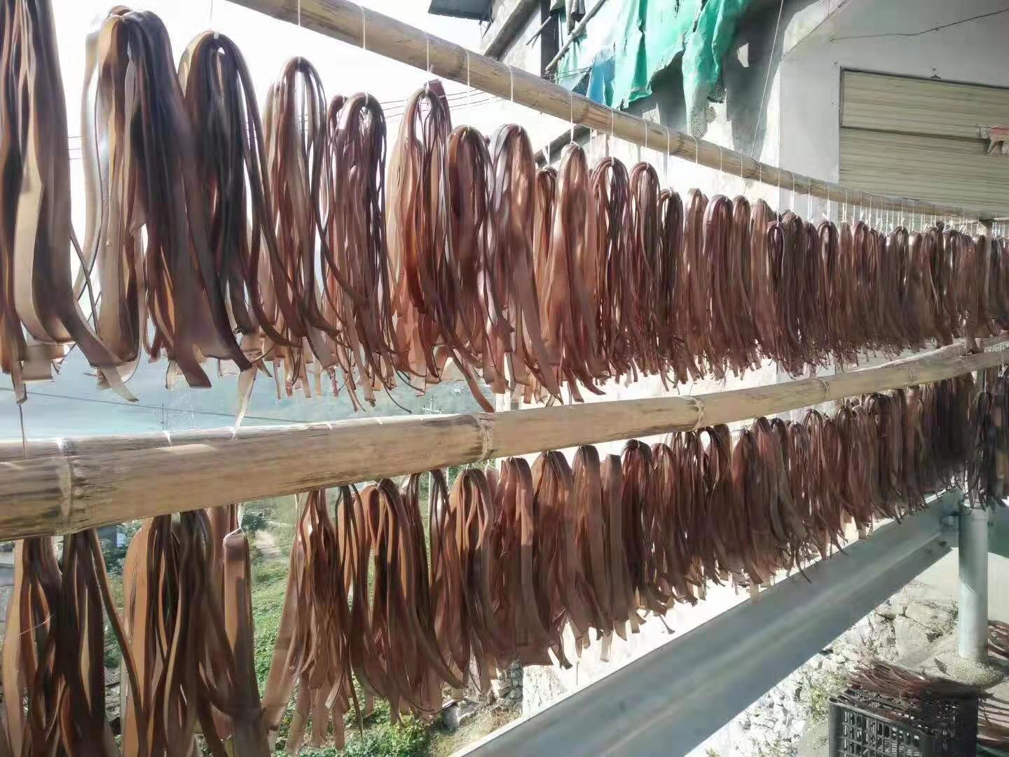 最后一道程序:才是將晾干的粉塊切成細(xì)絲和條塊,用麻絲棕條捆綁后再曬干或烘烤成干品。