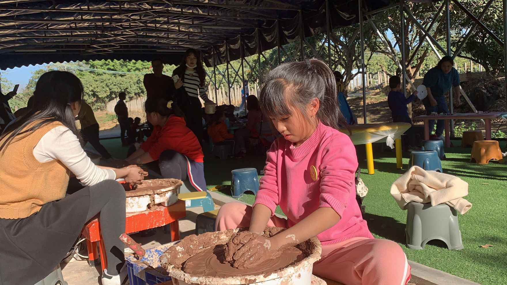 歡樂繼續(xù),中午選擇的是體驗(yàn)式午餐及野炊(自己動手做飯)。這下我們的媽媽們要帶著孩子們自己抓雞了,其實(shí)這對于孩子未嘗不是一種好的體驗(yàn)。不過讓這些年輕的媽媽殺雞還真是為難了他們,好在我們來的有幾位爸爸比較全能,幫媽媽們做了屠夫。我們小朋友們也沒有閑著,有的幫媽媽撿柴,有的幫媽媽摘菜,齊心做事總是好的,不一會就有一些菜品出來,也不分是哪桌了,哪桌好吃我們先開吃了,孩子們的宗旨是填飽肚子再說。