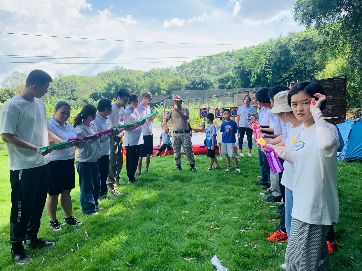 吃完之后,有的三三兩兩結(jié)伴去比試射箭,還有的去體驗(yàn)水上竹筏、桌球乒乓球、或者唱唱歌、制作陶藝等等,一天雖然短暫,但過(guò)得很充實(shí)。同事間不分彼此親如一家的情誼,大家一起努力,一起享受成果的喜悅,感受同事之間的濃濃情懷。