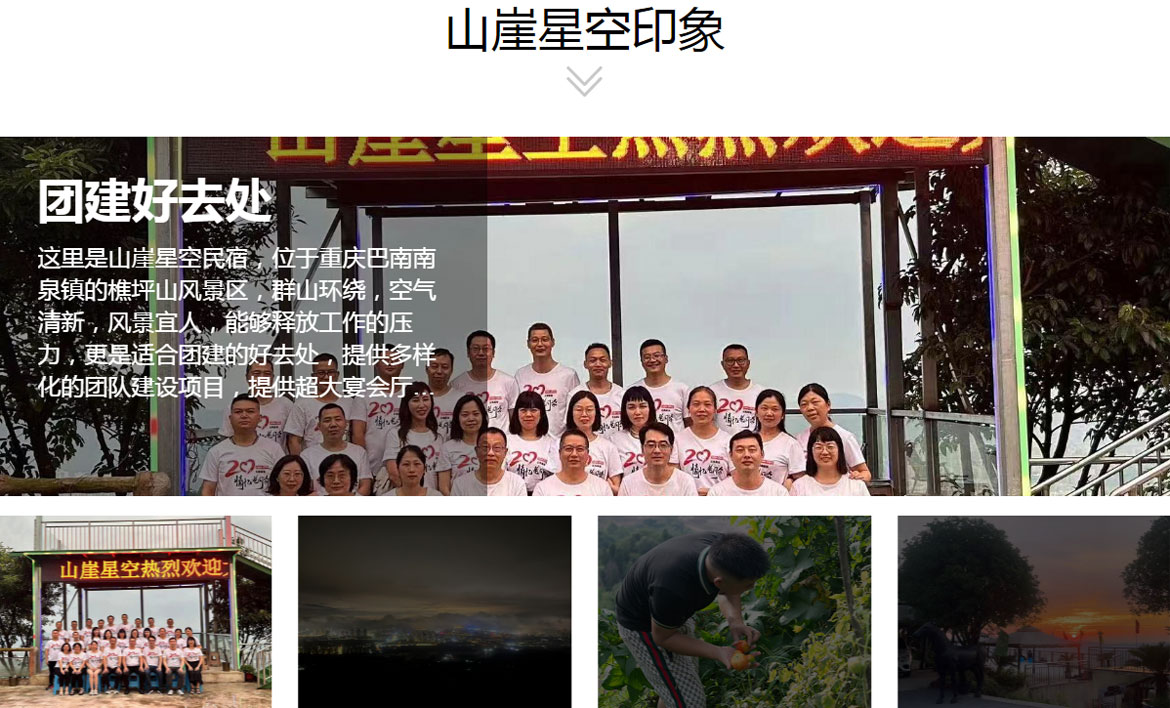夜晚燒烤 圍著石砌的燒烤臺,每個人都分配了不同的任務:有的負責生火,有的準備食材,還有的負責調(diào)料。隨著木炭漸漸燃起,火光映在每個人的臉上,烤肉的香味也慢慢四溢。肉串、雞翅、蔬菜,還有當?shù)氐奶厣巢?重慶懸崖民宿 在重慶巴南找到一處避世天地,在山崖之巔,俯瞰云海。在這里找到了遠離塵囂的寧靜,清晨推開窗,終于不再是竄行的車流,而是宛如油畫一般的云海,這真是太奇妙啦! 團建好去處 這里是山崖星空民宿,位于重慶巴南南泉鎮(zhèn)的樵坪山風景區(qū),群山環(huán)繞,空氣清新,風景宜人,能夠釋放工作的壓力,更是適合團建的好去處,提供多樣化的團隊建設項目,提供超大宴會廳,寬闊的用餐環(huán)境,設立VIP包間,供您和您的團隊使用 避暑游玩勝地 位于山頂,空氣清新,溫度涼爽,是夏日出行游玩的理想地點,提供自然觀景臺,在這里,你可以近距離感受云海、落日與星空的魅力