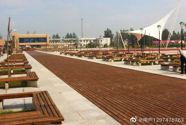 3、重慶庭院防腐木地板的高度,先是地上少5cm硬化,然后架龍骨,上面鋪2-4公分厚的長條木板,厚度大于5公分的方柱為削減開裂可在背面中心方位開一道槽;