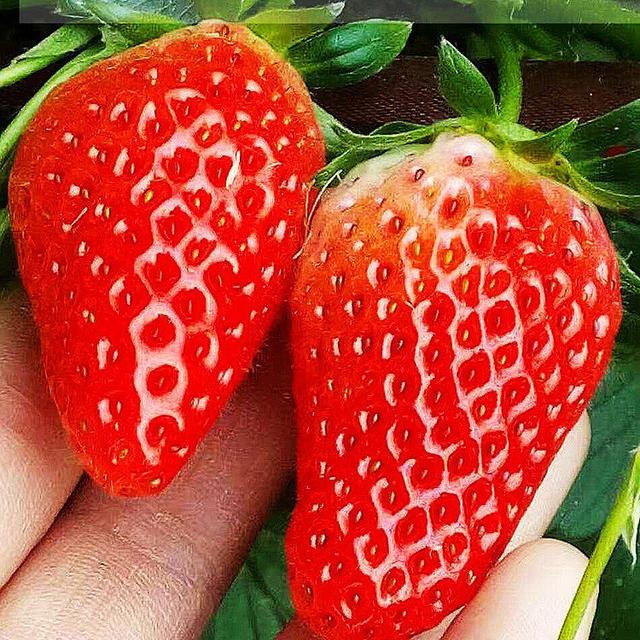 紅顏草莓的果實(shí)呈鮮紅色,表面光滑且有光澤,十分誘人。它的果實(shí)形狀整齊,大小適中,平均單果重可達(dá)20-30克,最大可達(dá)50克以上。這使得紅顏草莓在視覺上更具吸引力,成為了水果市場(chǎng)上的明星產(chǎn)品。