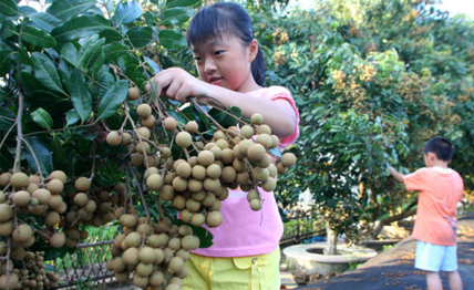 春去夏來,轉眼間,沿江的龍眼果實已經掛滿了枝頭,把樹枝都壓彎了。仔細看龍眼,只見它全身圓圓的,小的只有黃豆那樣大,大的則有拇指那樣大。龍眼在不同的階段是有不同的味道的:熟透的龍眼甜津津的,還沒熟透的則有一種苦澀的感覺。只要你輕輕地剝開龍眼的皮,你就可以聞到龍眼獨特的香味了。在晶瑩圓潤的果肉里嵌著棕黑色的核。