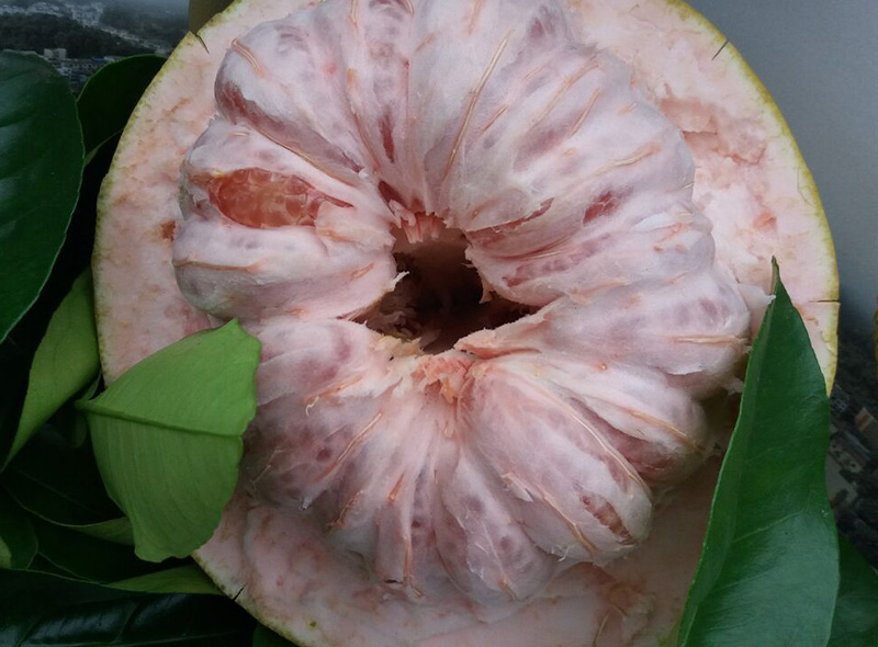 五布柚10月下旬至11月上旬成熟采摘,果大無核,芳香怡人,皮薄肉厚,果心粉紅,果肉嫩脆,汁多化渣,酸甜適度,消食通氣,富含人體所需的多種維生素,深受消費(fèi)者喜愛,乃食用饋贈之佳品。