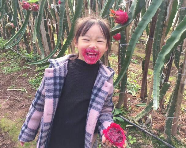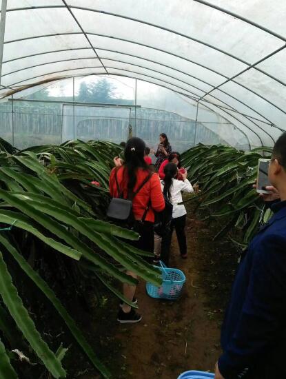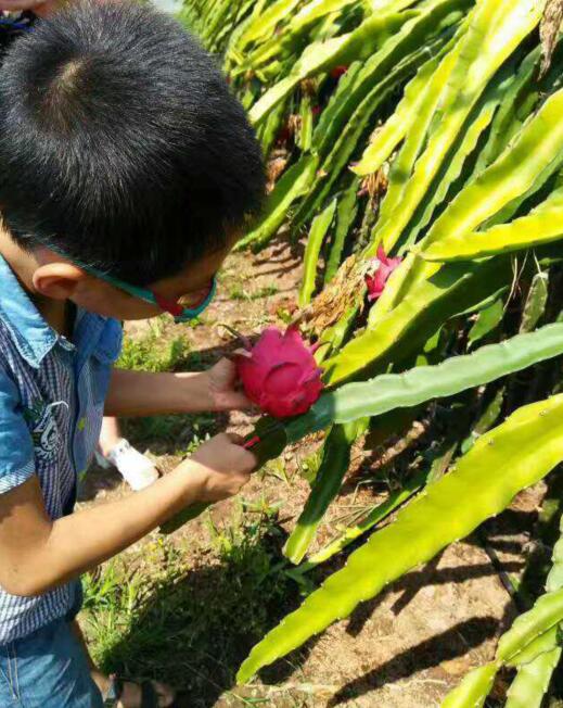 公司按國(guó)家有機(jī)標(biāo)準(zhǔn)種植專業(yè)種植紅肉火龍果,紅肉火龍果比起白肉的,更具美白潤(rùn)腸、降低膽固醇等的養(yǎng)生功效。這里種植了紅水晶、富貴紅、京都1號(hào)、玫瑰紅等4個(gè)品種的火龍果,各有各的味道。這些火龍果樹吃的是羊糞添加花生餅的有機(jī)肥,隨手剪下一個(gè)成熟的果實(shí),都約有七兩重,沉甸甸的相當(dāng)誘人……