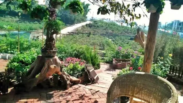 茅草、竹椅、木凳......農莊的建筑和小品,與果園充分融為一體。整個果園主要種植草苺、葡萄、桃子、桑葚和無花果多種水果以及農莊四季特供鮮蔬。