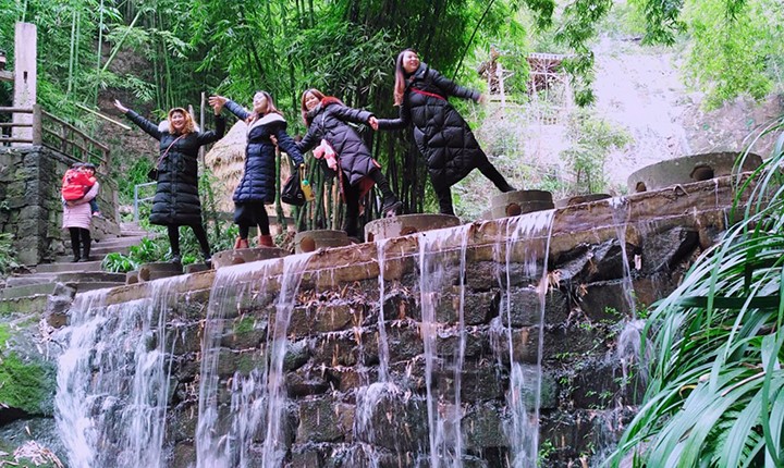 竹谷水澗非遺故事長(zhǎng)廊 這里有著獨(dú)一無二的200畝竹林,茂密成蔭,十分涼爽。一年四季溪流不斷,從上而下,穿過竹林,或成潭,或成溪,或成瀑布,靈動(dòng)靜謐,