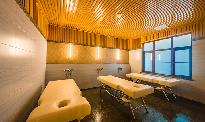 ◆鹽蒸洞(鹽桑拿),鹽湯能將堵塞在毛孔內(nèi)的多余皮脂溶解并排出體外。毛孔經(jīng)過清潔后將會收縮,皮膚會變得光滑細膩。鹽湯可以刺激汗腺,促使身體出汗,從而促進肌膚活性。