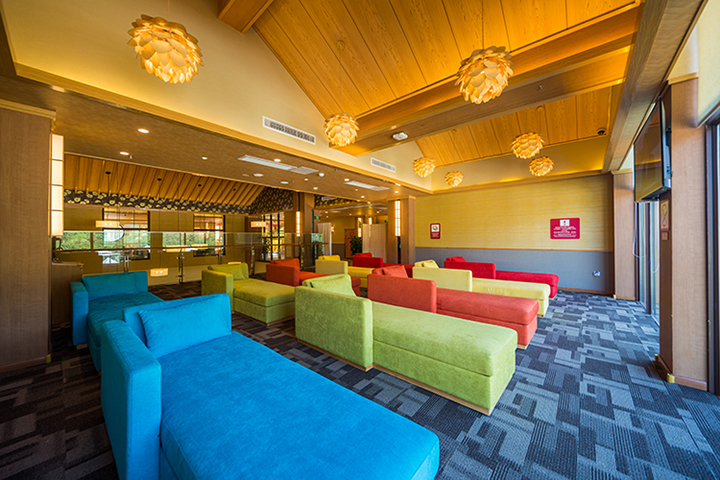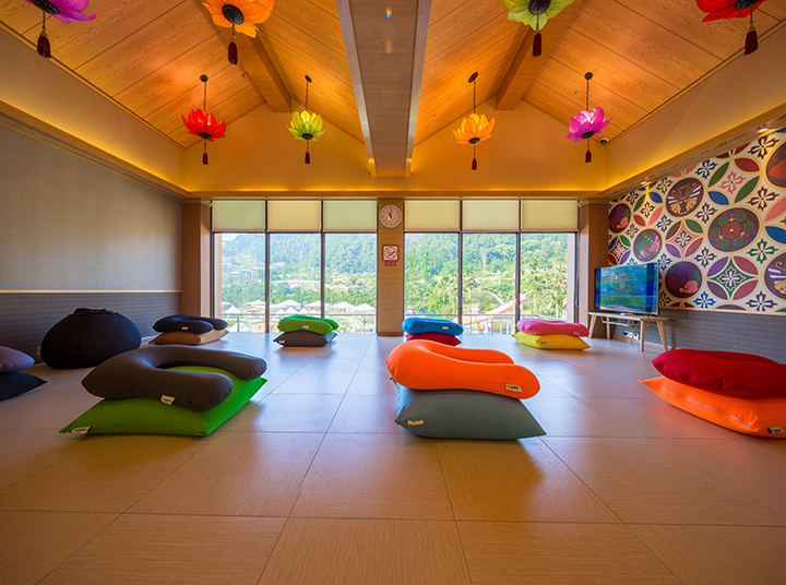 蒸完畢,再來到三樓公共休閑區(qū),暖暖的燈光折射出一種慵懶的氛圍,超大日式榻榻米非常吸引人的眼球,整體環(huán)境運用了和室、原木、植物景觀,營造出一種非常舒適的休憩之地。