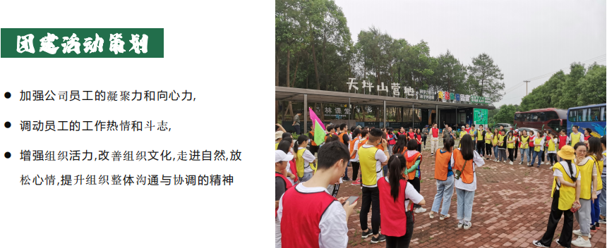 加強(qiáng)公司員工的凝聚力和向心力,調(diào)動(dòng)員工的工作熱情和斗志,增強(qiáng)組織活力, 改善組織文化, 走進(jìn)自然, 放松心情, 提升組織整體溝通與協(xié)調(diào)的精神