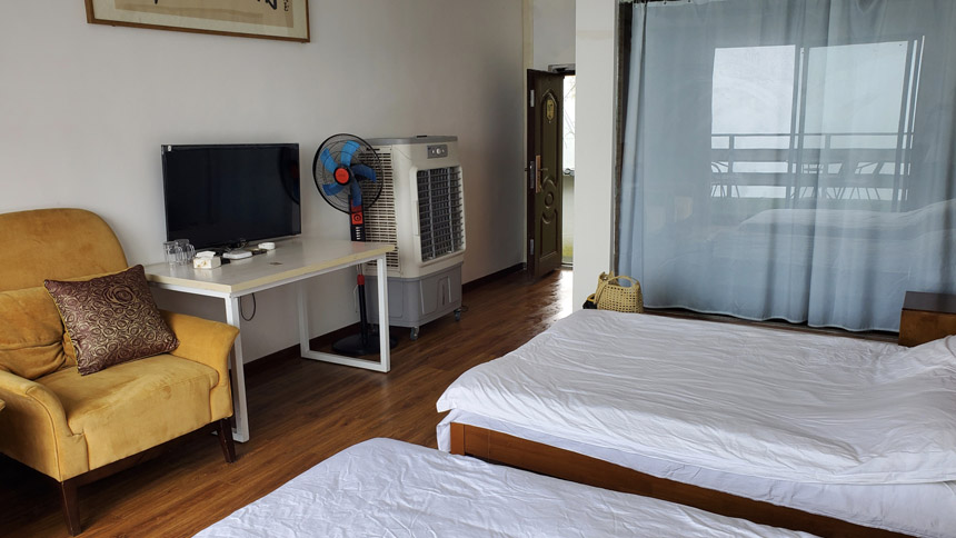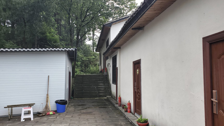 蔡家苑懸崖燒烤位于巴南區(qū)南泉街道新式村蘭田組9號,在樵坪山風(fēng)景區(qū)范圍內(nèi),是一家以懸崖燒烤為主的農(nóng)家樂。在路上通過微信聯(lián)系了老板,老板告訴我到達后找收費的大叔,他會帶我們辦理入住和燒烤事宜,并給了收費大叔的電話。因此到達后很快辦理了入住手續(xù)到達房間。