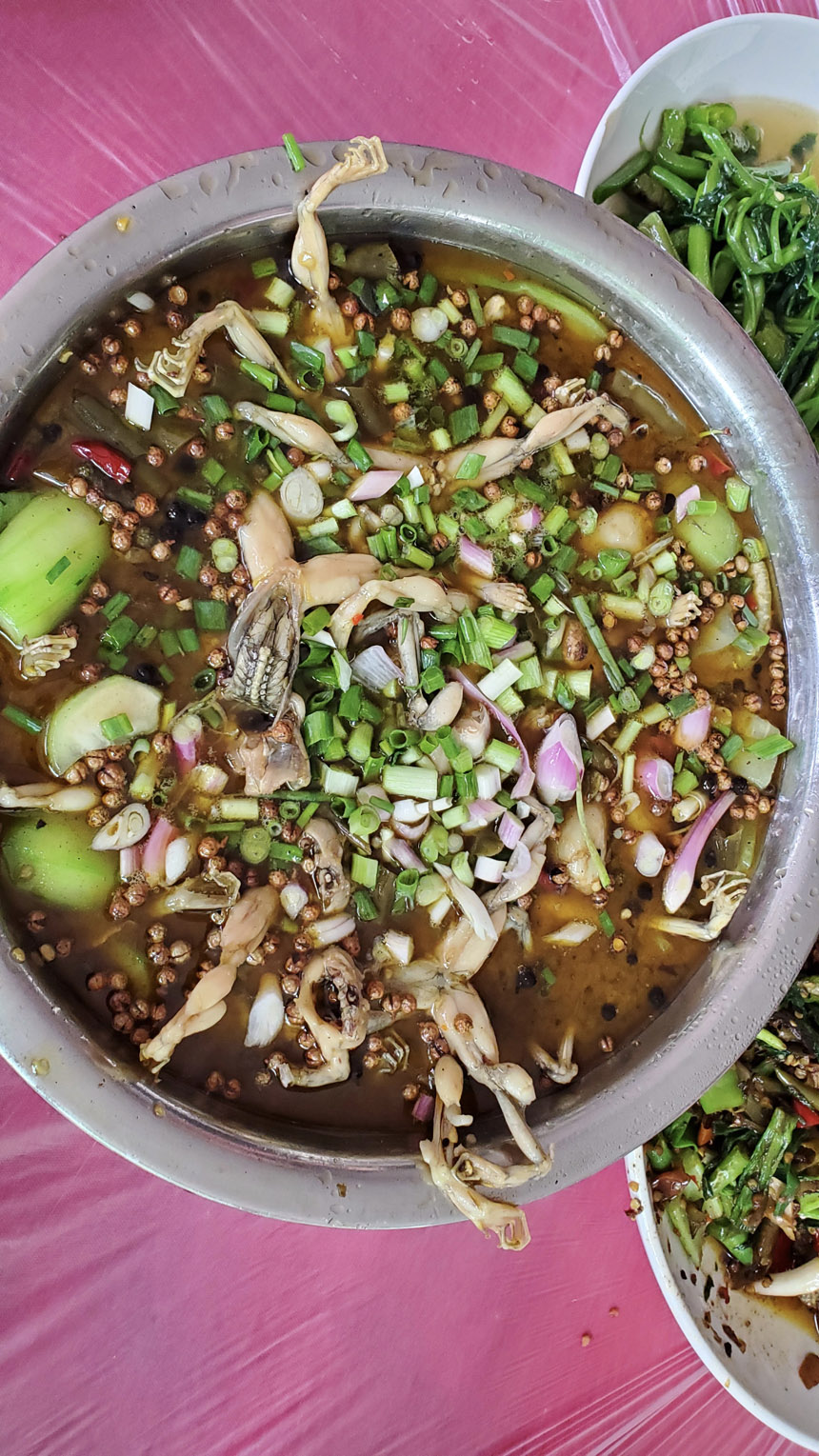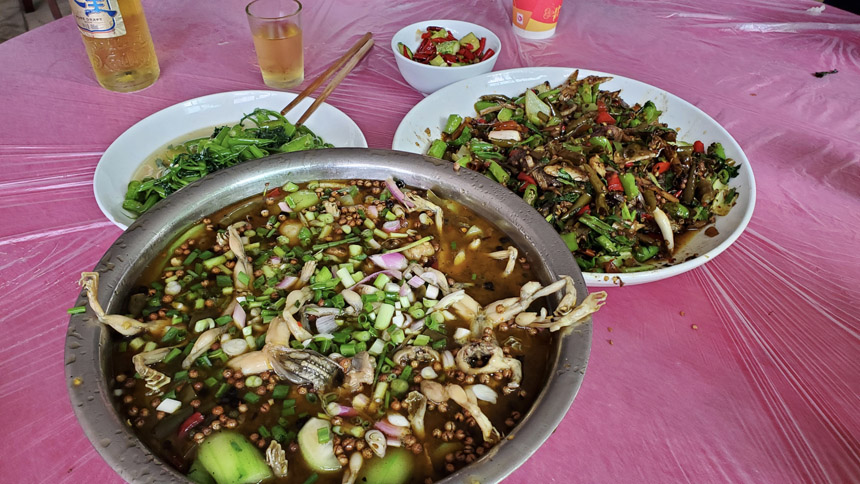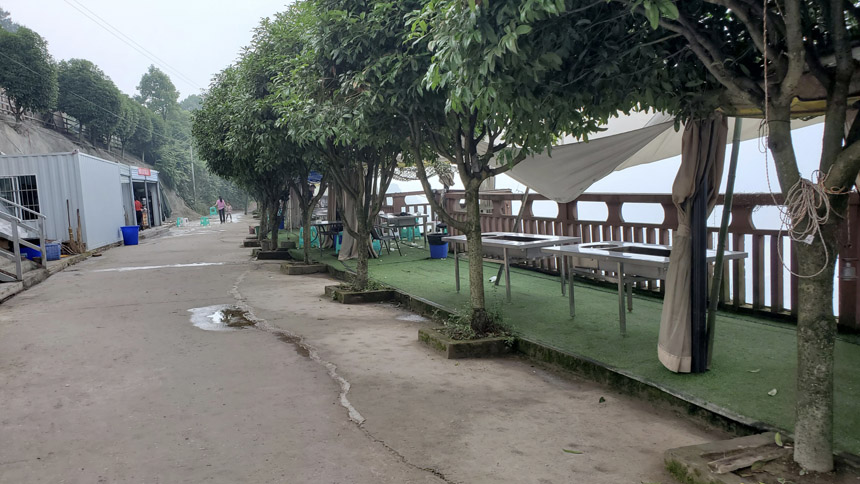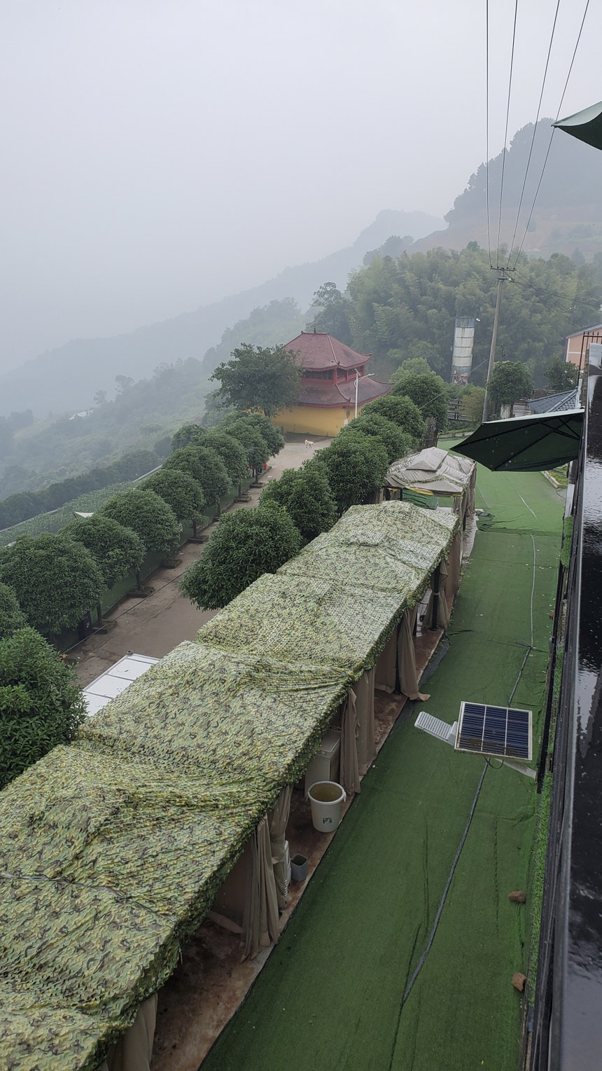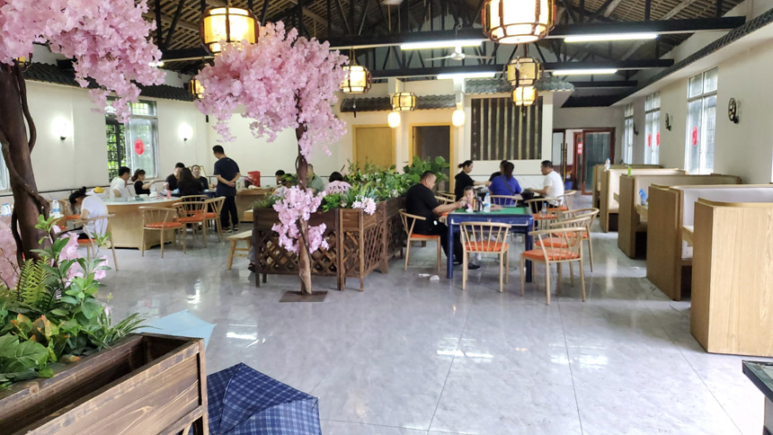 三點鐘左右打傘出去轉(zhuǎn)了轉(zhuǎn),發(fā)現(xiàn)其他人也窩在房間里,除了房間內(nèi)的人外,餐廳里有兩桌人在打麻將,另外還有幾桌人在專門的麻將房里打麻將。除了燒烤,餐廳也提供炒菜,這里實際上就是一個集吃喝玩樂為一體的農(nóng)家樂,不過特色是燒烤,并且是網(wǎng)紅的懸崖燒烤,所以才有這么多人專門前來燒烤。