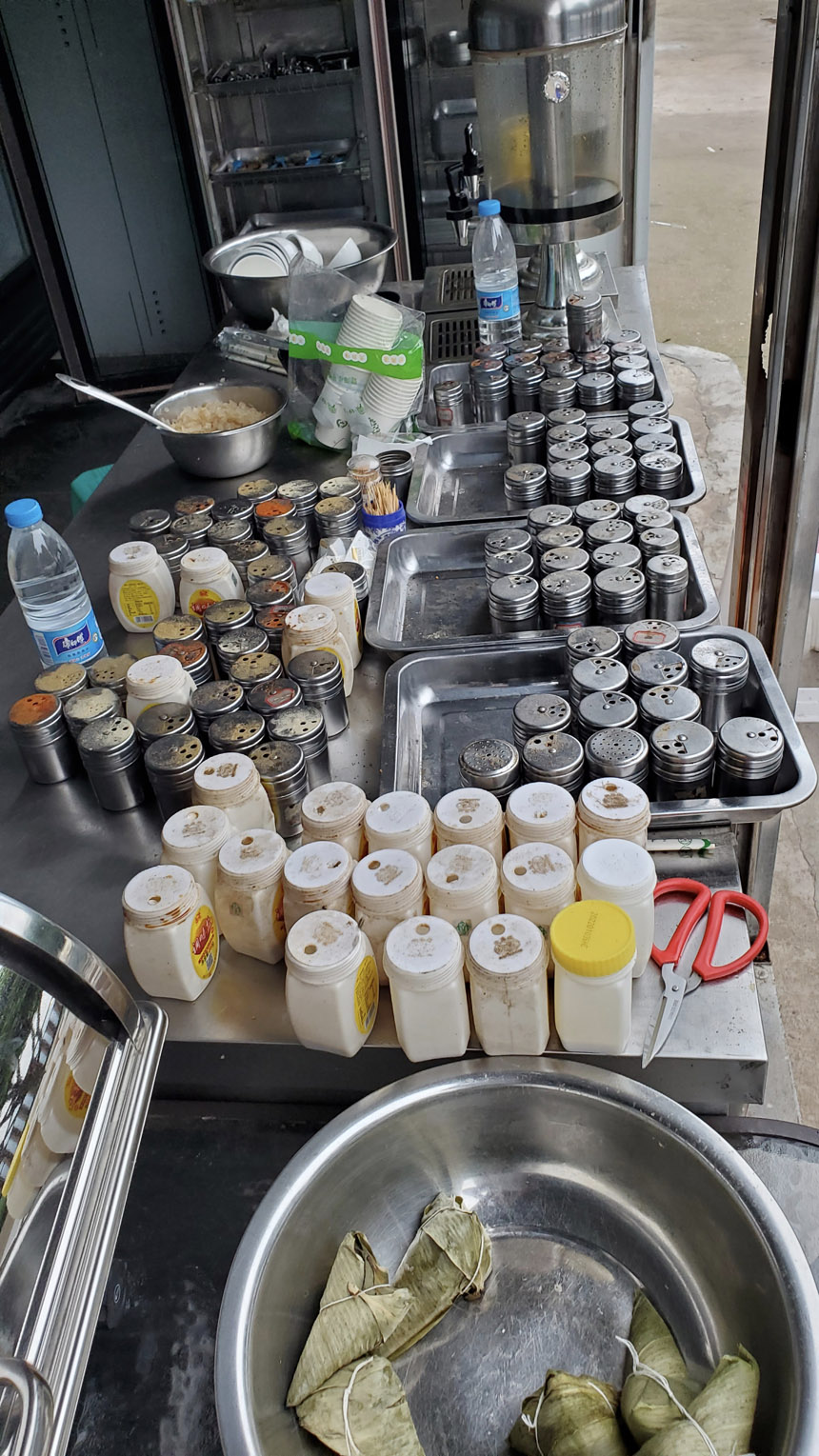 打著傘去餐廳吃了早飯,吃過早飯又出去轉(zhuǎn)了轉(zhuǎn)。早飯是標(biāo)準(zhǔn)的農(nóng)家樂配置:雞蛋、稀飯、饅頭、咸菜,不過除了雞蛋外,其它的不限量。