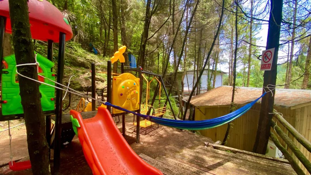 除去孩童玩耍嬉鬧的后院游樂吊床區(qū),后院半山亦保留了足夠?qū)掗煹拈e庭,漫步的松林,你可以在這里追一只蝴蝶,也可以在湖對(duì)面燒烤婚宴區(qū)的草地上閑坐,只看著遠(yuǎn)處淡藍(lán)的天空,來一次漫長(zhǎng)的發(fā)呆。