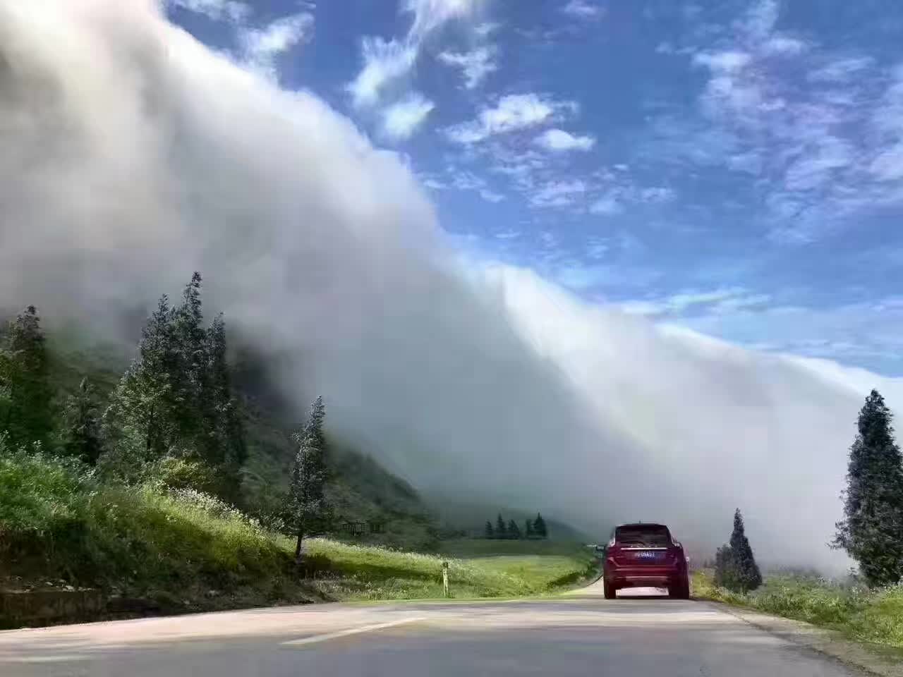 位于重慶市南川區(qū)境內(nèi)的金佛山景區(qū)在連日降雨過后開始放晴,從清晨開始云霧在山谷間時(shí)而升騰、翻滾,時(shí)而彌漫、舒展。遠(yuǎn)處黛山、農(nóng)房在飄渺薄霧中若隱若現(xiàn),宛如一幅美麗的圖畫。圖為游客在金佛山景區(qū)欣賞雨后云瀑景觀。