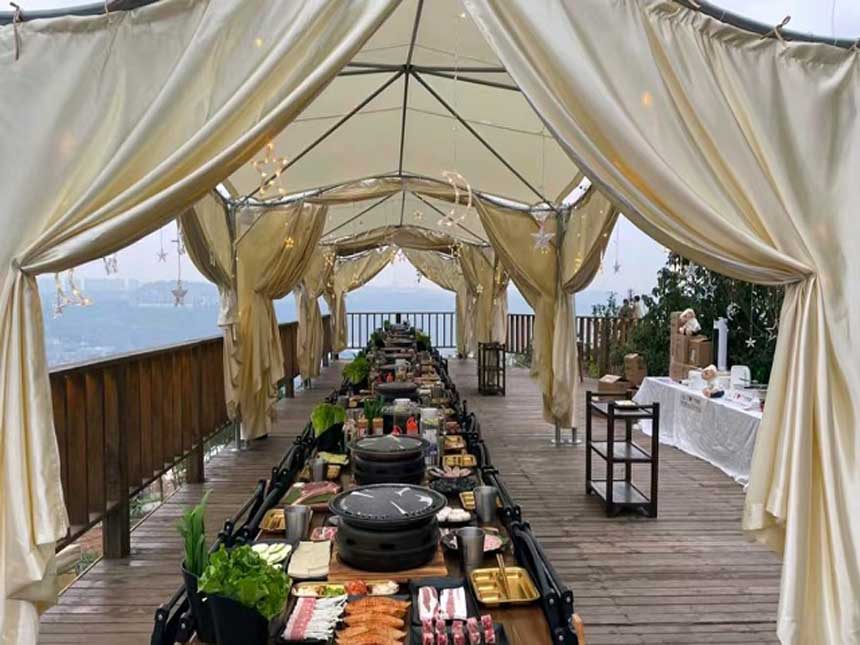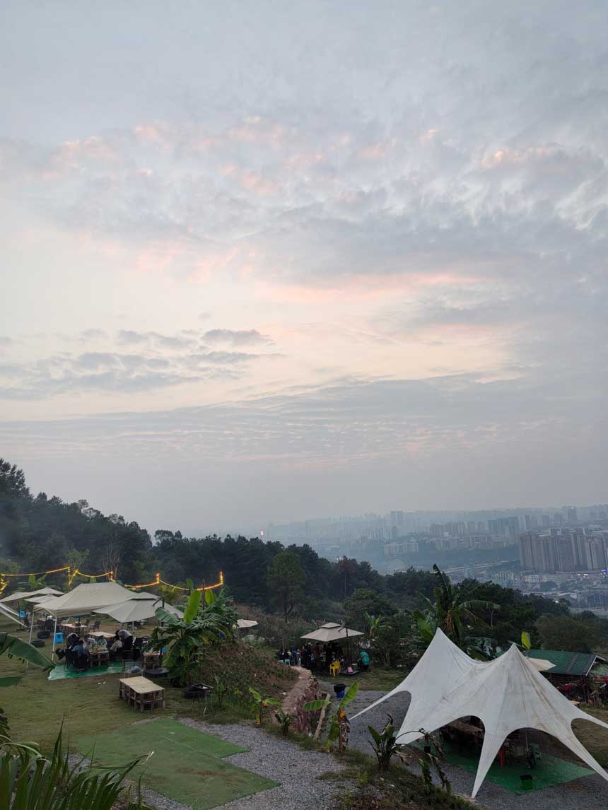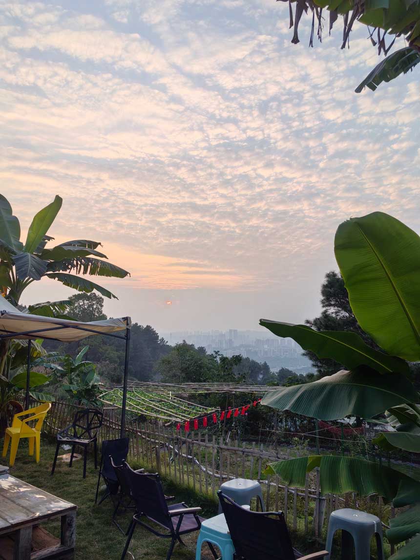 重慶渝北區(qū)環(huán)山村十七社的這家十九莊園,是相當(dāng)隱秘的一個(gè)存在。 沿著輕軌十號(hào)線一路過來,經(jīng)過環(huán)山和長(zhǎng)河,爬上一公里多點(diǎn)的盤山路,眼前豁然開朗。 整個(gè)莊園就像是一個(gè)露營(yíng)地,種了不少芭蕉樹,有點(diǎn)置身于版納的感覺。 食材新鮮,自己動(dòng)手用炭火烤爐烤著吃。 頭頂不斷有飛機(jī)掠過,天黑透了就能看見滿天繁星。有美景,有美食。 值得一試。