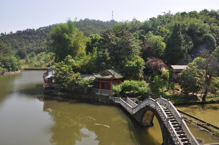 整個(gè)園區(qū)占地近兩佰畝,其標(biāo)志性建筑是三座亭閣,三亭園也因此得名,最主要是這三座亭閣互成犄角,可以從不同角度窺視三亭全貌,特別是那依湖而建的清風(fēng)廊,翠綠青幽的竹園與果、林、花、草、湖、水相互輝映、相互襯托。