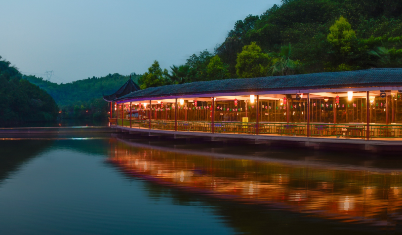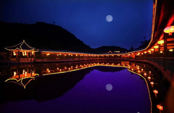 廊橋夜景更為美麗迷人,入夜,深柯藏靜風(fēng),露葉留晚滋,風(fēng)吹花樹,波搖燈影,在此喝酒品茶的游客,都會生發(fā)出“細(xì)酌高吟”的情致。