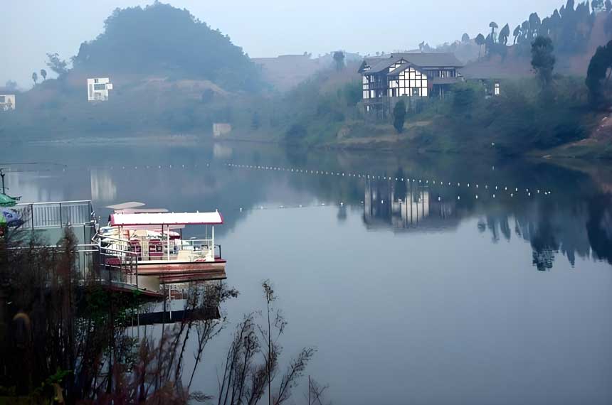 美滿天香度假酒店座落于重慶北碚靜觀農(nóng)谷生態(tài)園區(qū),占地50余畝,地理位置得天獨(dú)厚。天然景觀湖宛如玉帶圍繞酒店,春天您能從這里滿目絢麗山花之中的勃勃生機(jī)感受春意盎然;也可在夏天湖邊的翠柳下納涼垂釣或泛舟湖上欣賞那滿池荷花;深秋約上三五知己把酒言歡,在那滿山黃葉芬飛帶來的蕭瑟秋意中感嘆人生;隆冬天節(jié)攜家人共同,圍坐烤爐,地道的特色烤全羊系列美食定能讓您及家人大飽口福!