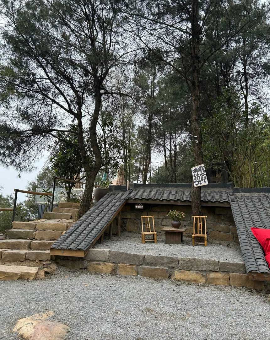 可以在林間餐廳吃著特色花椒雞,在山崖邊眺望遠方,看著連綿起伏的山脈,擁抱大自然!