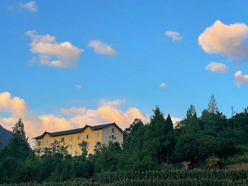 山莊建筑為5層結(jié)構(gòu),配備42間客房及寬敞用餐區(qū)域,可滿足大規(guī)模游客接待需求。餐飲以地道農(nóng)家風(fēng)味為特色,供應(yīng)自制臘肉、香腸、臘豬蹄、新鮮竹筍等原生態(tài)菜品,更有散養(yǎng)跑山雞、土鵝等食材入饌,肉質(zhì)鮮嫩,盡顯鄉(xiāng)土本味;配套設(shè)施完善,設(shè)有垂釣魚塘、棋牌娛樂區(qū),提供免費(fèi)停車及農(nóng)家采摘體驗(yàn)服務(wù),寬敞院壩可滿足多元化活動需求。依托優(yōu)越自然環(huán)境,游客可在此晨觀云海、暮賞晚霞與風(fēng)車相映的獨(dú)特景致。運(yùn)營以來,在韋芹的積極帶領(lǐng)下通過直播、自媒體等渠道推廣,推動山莊規(guī)范化運(yùn)營,始終堅(jiān)守服務(wù)初心,憑借優(yōu)質(zhì)體驗(yàn)贏得廣泛認(rèn)可,已成為山王坪鄉(xiāng)村旅游的重要接待載體。