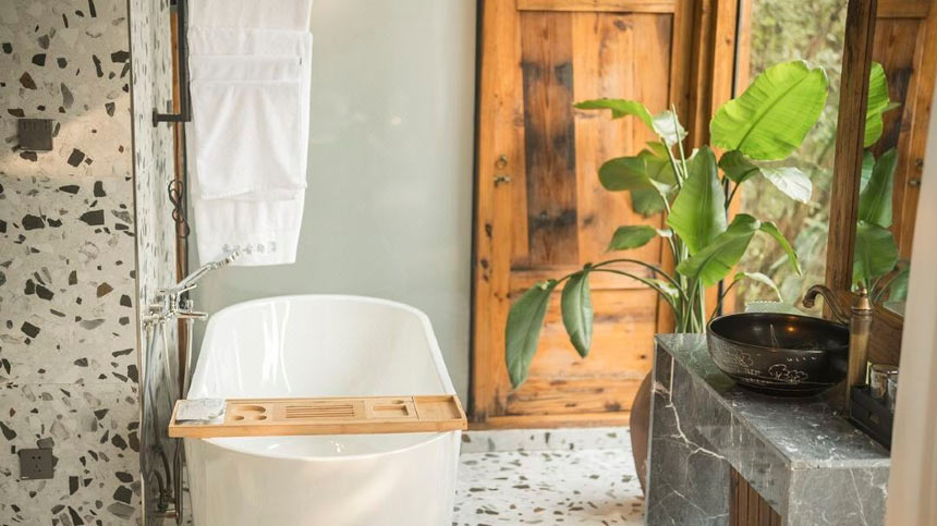 初見驚艷 白墻青瓦配上原木色系 仿佛闖進(jìn)了江南水墨畫 每棟別墅都帶獨(dú)立庭院 竹籬笆圍著滿滿的繡球花 推門瞬間就聽到風(fēng)鈴清脆聲 整個(gè)人瞬間被溫柔包圍~