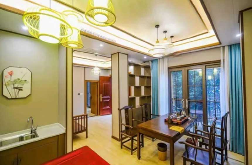 這是一棟徽派建筑風(fēng)格的獨(dú)立四合院,內(nèi)設(shè)不同規(guī)格的茶室包房、書吧(永川圖書館茶山竹海景區(qū)分館)、觀影廳、孔廟等不同功能分區(qū)。清靜幽雅,是您放飛思緒,感受茶竹文化的絕佳場(chǎng)所。