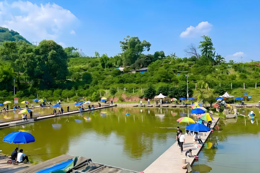 康然山莊的魚塘水是從長(zhǎng)江抽上來的,塘中喂養(yǎng)了鯽魚、桂魚、鰱魚等多個(gè)品類,魚的生長(zhǎng)環(huán)境和野生相似,所以口感特別好。不少老顧客享受完垂釣之樂,會(huì)把親手釣來的鮮魚在山莊進(jìn)行加工,和親人朋友一同享受鄉(xiāng)間美味,還會(huì)購買一些村民種植的蔬菜水果帶回去送給親戚朋友品嘗。