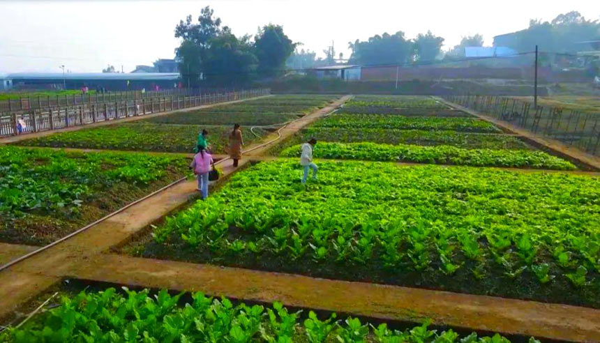 在園區(qū)內(nèi)的蔬菜種植基地,放眼望去,一片綠油油的景象展現(xiàn)在眼前,這代表著生命的活力,象征著農(nóng)業(yè)的豐收與希望。