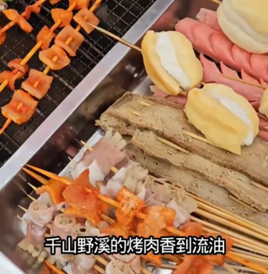 千傘野溪離重慶一小時達到的玻璃水 玩水地 重慶1小時,秒變野孩子!玻璃水溝釣蟹狂歡,星級酒店躺平享受,吃玩住全包!沖!千傘野溪的49.9元單人燒烤套餐自助隨便吃,肉類和飲品都很豐富,值得一試。
