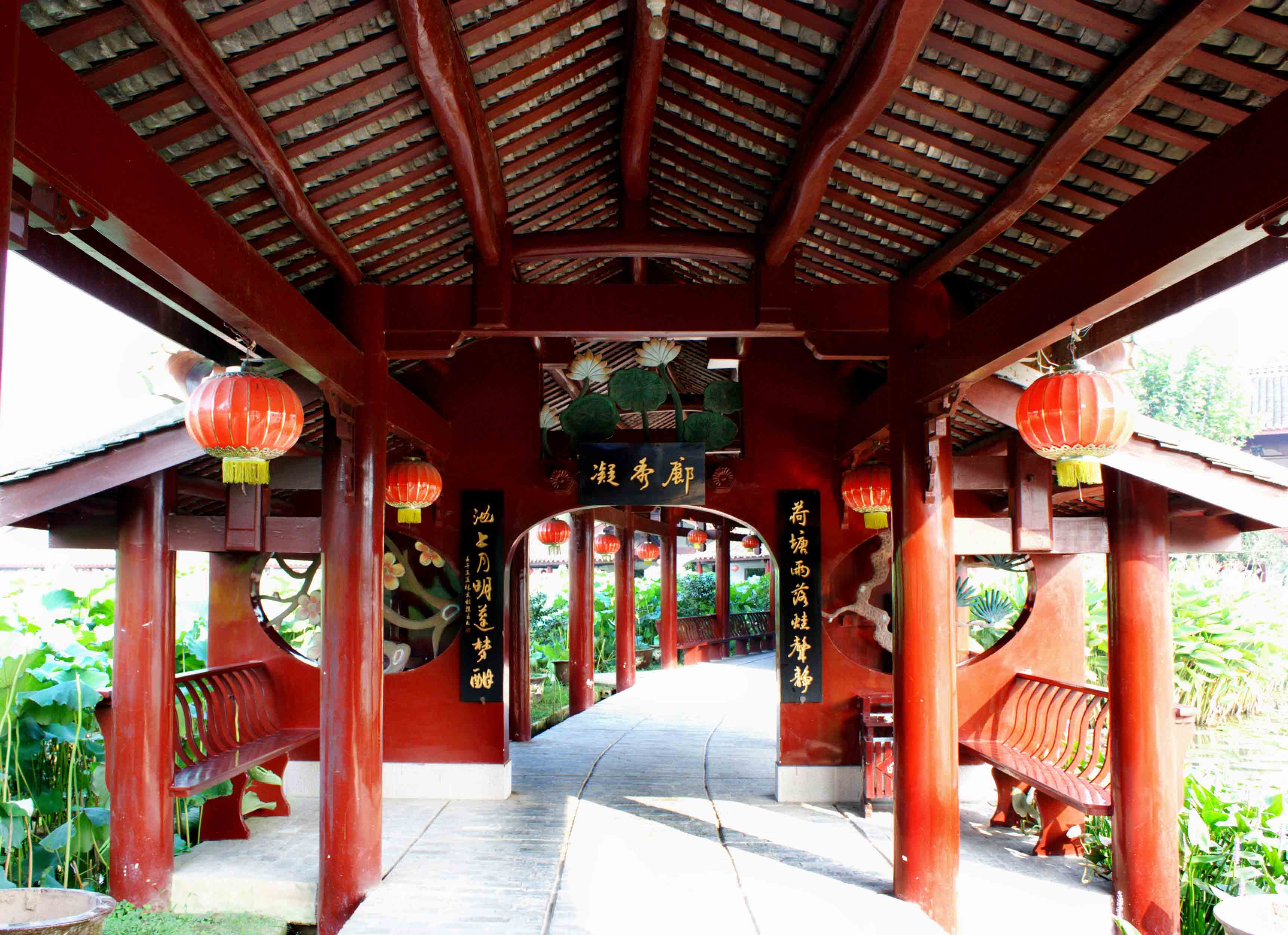 其圍繞蓮荷審美主題,在園林建筑、環(huán)境綠化與蓮荷培育中,突出蓮荷文化,開拓了荷花審美的廣闊空間,進行了卓有成效的努力探索,打造出具有自身獨特風格的、富有詩情畫意的園林蓮荷景觀。