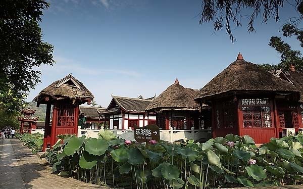 大足荷花山莊位于距大足縣城5公里,近鄰著名的世界文化遺產大足石刻寶頂山風景區(qū),占地面積1520畝,?其中水域面積1000多畝,是一個以蓮荷文化為特色的星級農家樂園,集游覽、休閑和飲食為一體。在山莊的北面是一條數(shù)百米長的仿古民俗文化街,化龍河與其余三面相連相依蜿蜒曲折。溪河涓涓不斷的流水,是荷花山莊生存、發(fā)展的不竭之源。四面高低起伏的綠色山林,映襯和裝點著荷花山莊這塊神奇而美麗的旅游寶地。