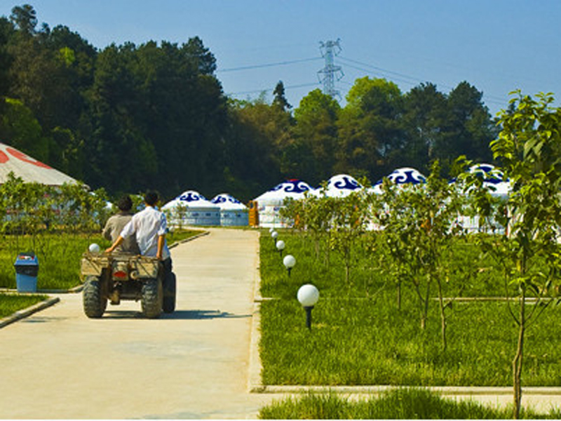 園內(nèi)有大型露天燒烤場,可供一百五十人同時進(jìn)行露天自助燒烤及舉辦篝火晚會。同時可提供戶外音響,投影機,電影放映等各方面良好的配套服務(wù),讓驢友的活動變得輕松流暢,全情投入。 擁有全市最大型的也是最獨特的蒙古包群,現(xiàn)有蒙古包三十二個,其中最大的一個內(nèi)部面積三百六十多平米,可謂金碧輝煌?扇萑偃送M(jìn)行場內(nèi)動活,舉辦會議或壽宴,婚宴。其它蒙古包則提供KTV,機麻,住宿等配套服務(wù)?照{(diào),洗浴,衛(wèi)生間等設(shè)施配置齊全。
