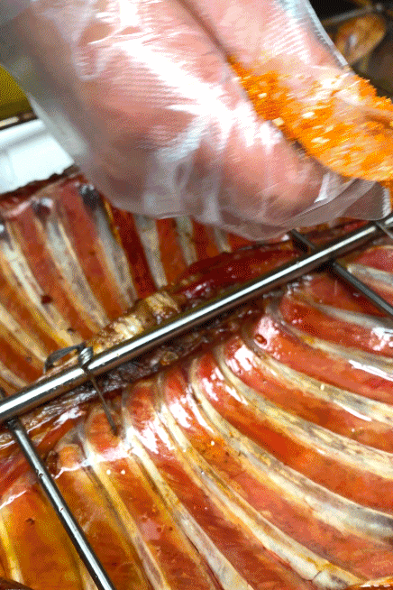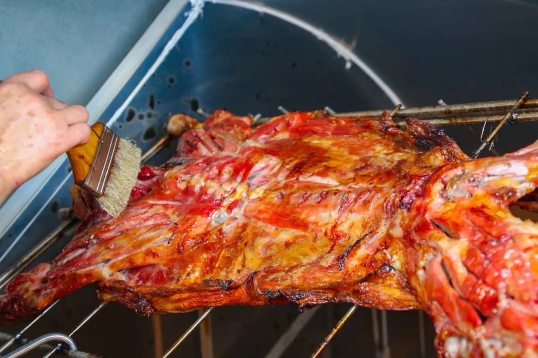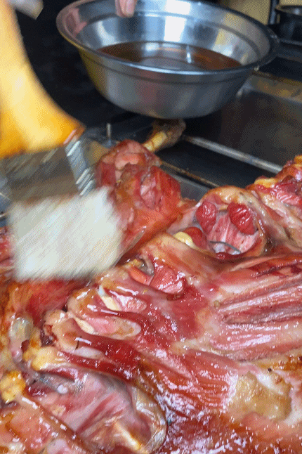 為了羊肉的口感不柴,烤的過程中需要反復(fù)刷好幾次油。