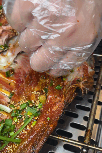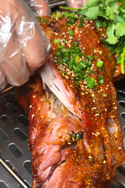 磨刀霍霍向全羊,吃烤全羊就不要在乎形象,戴上一次性手套,盡情地享受撕扯的快感吧!