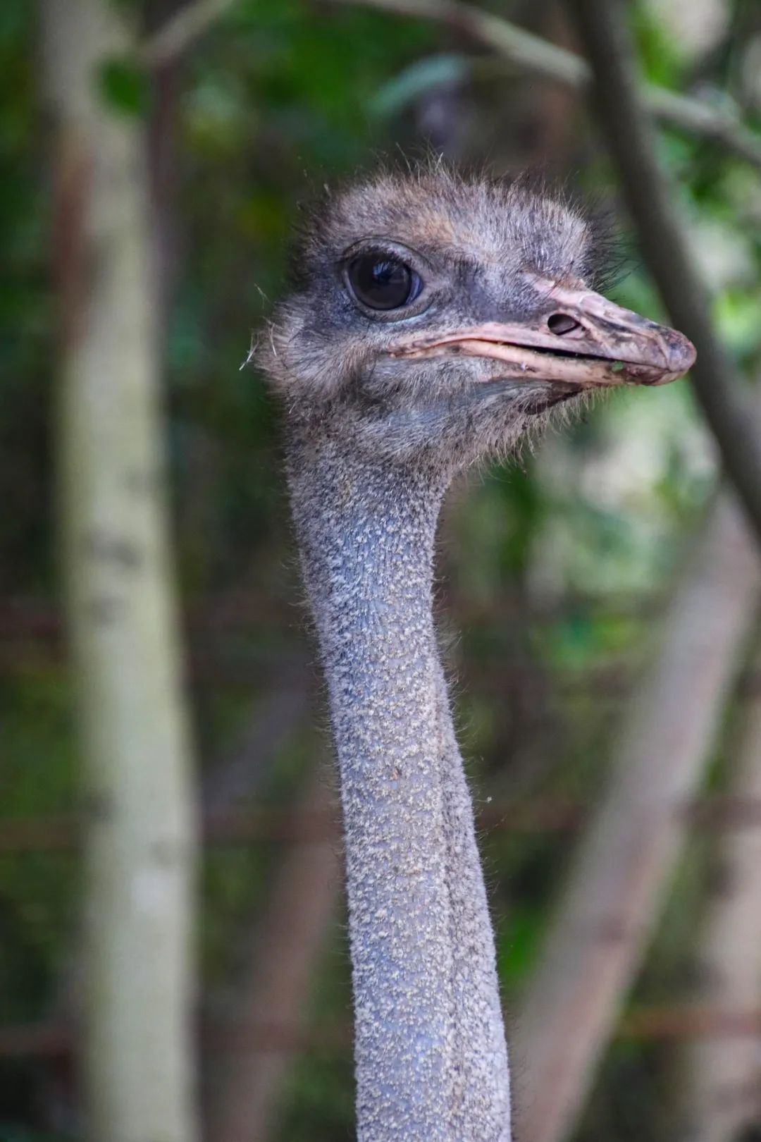 印象中的鴕鳥是生活在沙漠中或是動物園里的,但是!在敖哥的農(nóng)莊里,我見到了活生生的鴕鳥!這兩只鴕鳥長得很是眉清目秀,脖子又細又長。