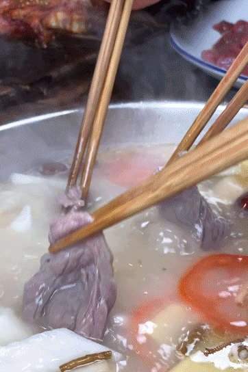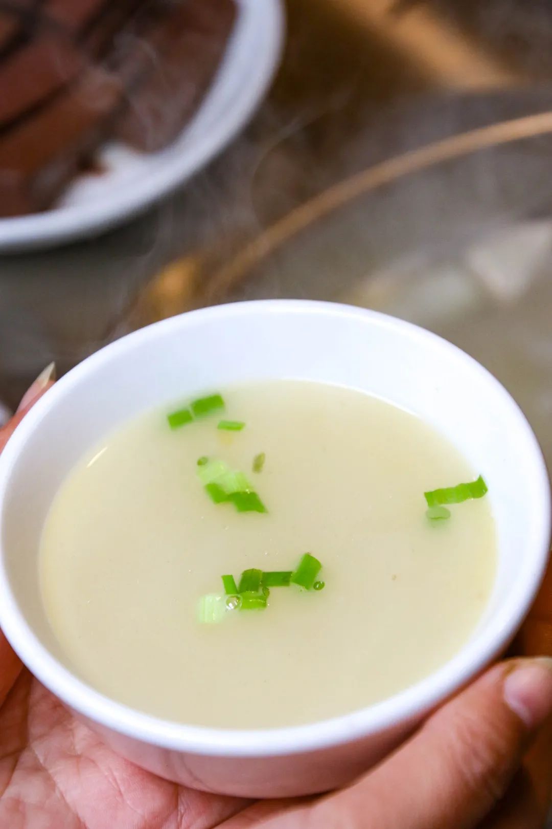 涮火鍋前先來一碗鴕鳥骨湯,湯喝起來十分清爽,味道微甜,一口入喉后舌尖會有少許回甘,冬天來一鍋這樣的湯最好不過啦!