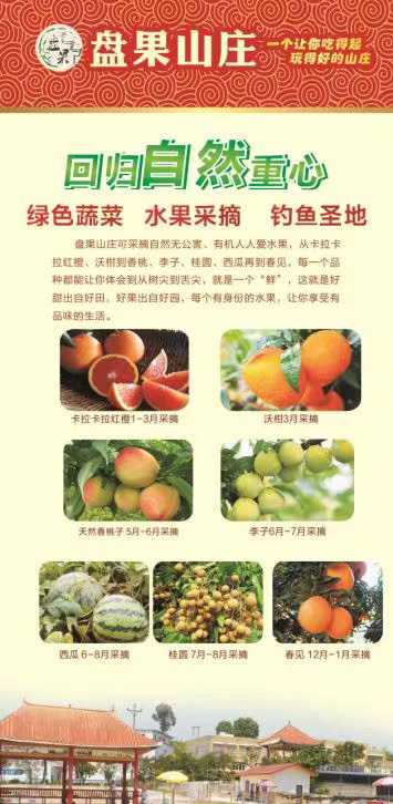 山莊內(nèi)有果園;▓@,可供游客采摘水果,欣賞美景