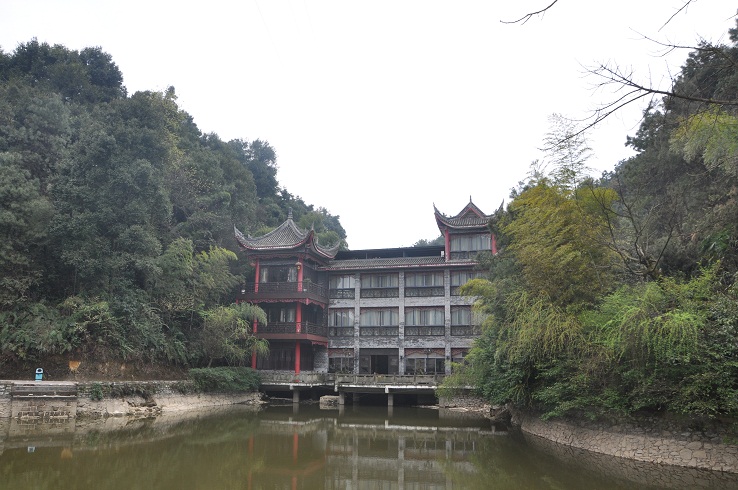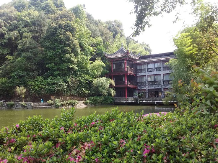 愚園度假村由四棟青磚綠瓦且極具復(fù)古風(fēng)格的主體樓組成,掩映于輕松綠樹中。