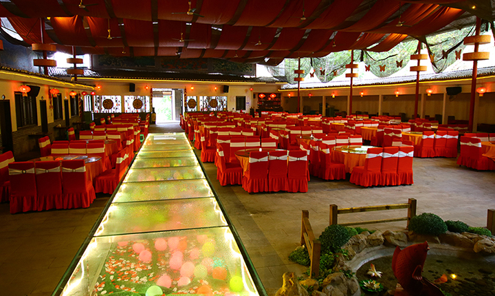 老陳菜室內(nèi)外餐廳總占地約2000m,可容納500人同時(shí)就餐,可承辦各種宴會(huì)、喜慶筵席、同學(xué)會(huì)及各類會(huì)議。