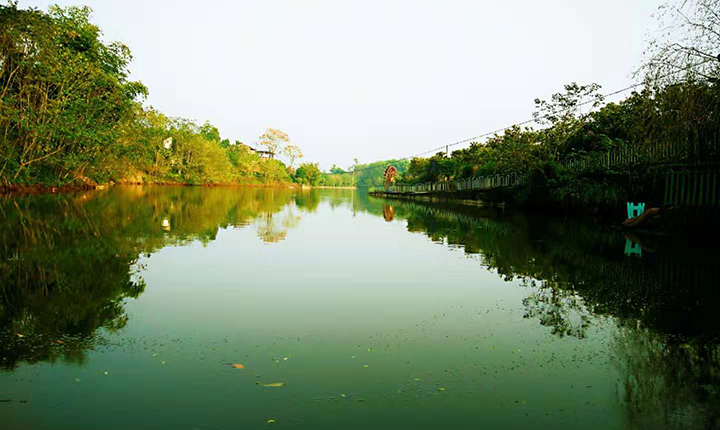 這里依山傍水,生態(tài)宜人雖有人工雕琢,亦有點(diǎn)綴之效與自然渾然一體構(gòu)成一具碩大的天然氧吧