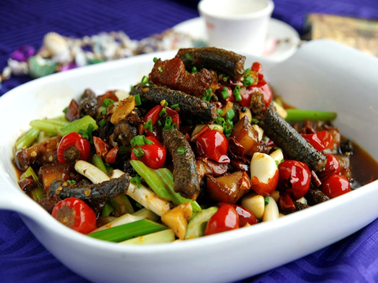 本山莊餐飲主要以農(nóng)家風(fēng)味為主的野味燒烤(全羊30元/斤、土雞、兔),三大盤(美蛙60元/斤、鱔段80元/斤、花椒雞38元/斤),云山湖魚,狗肉等系列的特色菜 特別是燒烤、三大盤等之內(nèi)的特色美食名揚(yáng)市內(nèi)外。各類會議、團(tuán)體接待等常來常往,每年接待客人約4萬人次
