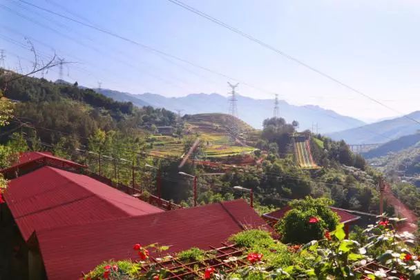 陽光下的亞源,青山、綠樹、紅花相映成趣,遠(yuǎn)處的群山如同披上了金色的外衣,顯得格外的美麗。