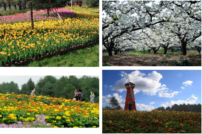 園內(nèi)分為萬壽菊、馬鞭草、二月蘭、墨西哥鼠尾草、荷花等7大賞花區(qū),目前已經(jīng)陸續(xù)栽種培育了櫻花、桃花、茶花、菊花、黃花槐、李花、荷花、玫瑰花、紫荊花、西洋鵑、木春菊、郁金香、虞美人、一串紅、楓葉、三色堇等50多個四季花卉觀賞品類。