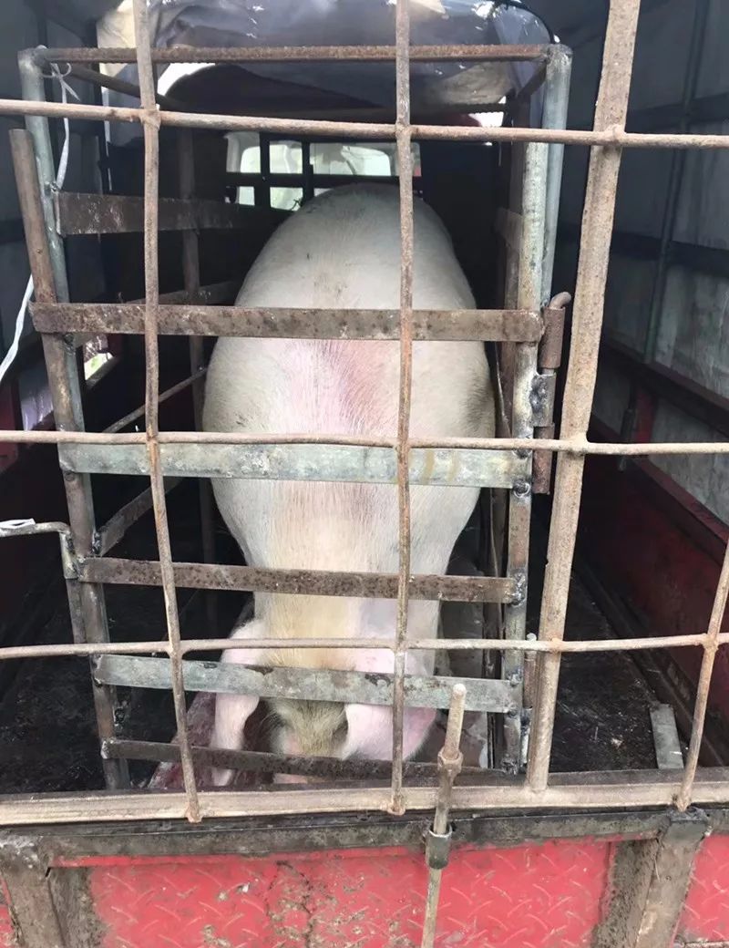 選好了一頭不大的豬,用三輪車來回山莊