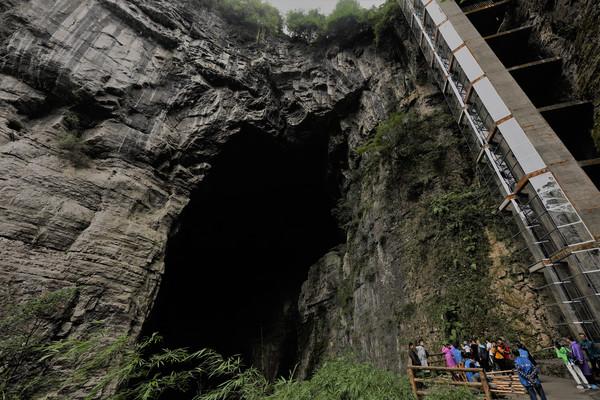 下到天生三橋,先經(jīng)歷一個觀光電梯,電梯垂直高度80米,從電梯里下降時,往下看,還是相當刺激的。