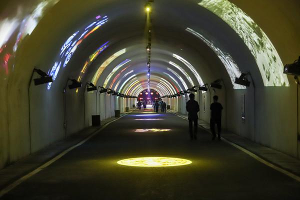 檢完票之后,將會來到一個時光隧道。里面展現(xiàn)了一些以前纖夫的老照片,還有一些風景的照片?粗鴫ι系恼掌杏X自己就像在時光機里穿梭一樣。
